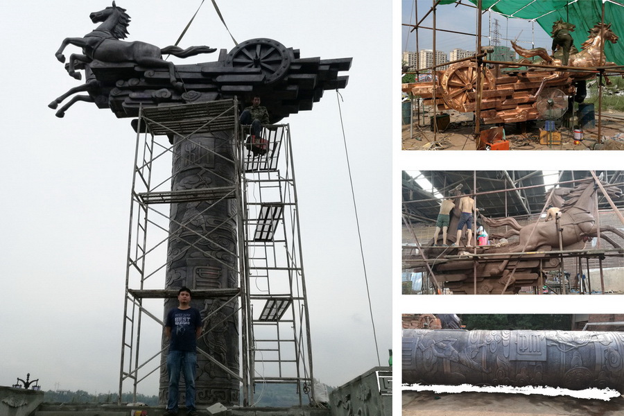 專業設計制作包括樹脂,GRC,玻璃鋼,泡沫,砂巖,鍛銅,鑄銅,不銹鋼,紫銅鍛造等各種材質雕塑。
